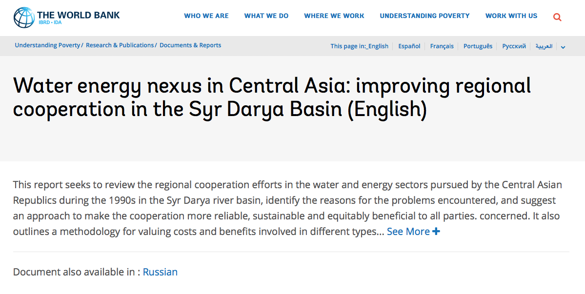 This report seeks to review the regional cooperation efforts in the water and energy sectors pursued by the Central Asian Republics during the 1990s in the Syr Darya river basin, identify the reasons for the problems encountered, and suggest an approach to make the cooperation more reliable, sustainable and equitably beneficial to all parties. concerned. It also outlines a methodology for valuing costs and benefits involved in different types of arrangements, so that decisions could be made on the basis of a sound cost benefit analysis. Further it identifies the policy options, structural options and institutional improvements to be pursued by these countries to reinforce the cooperation arrangements.